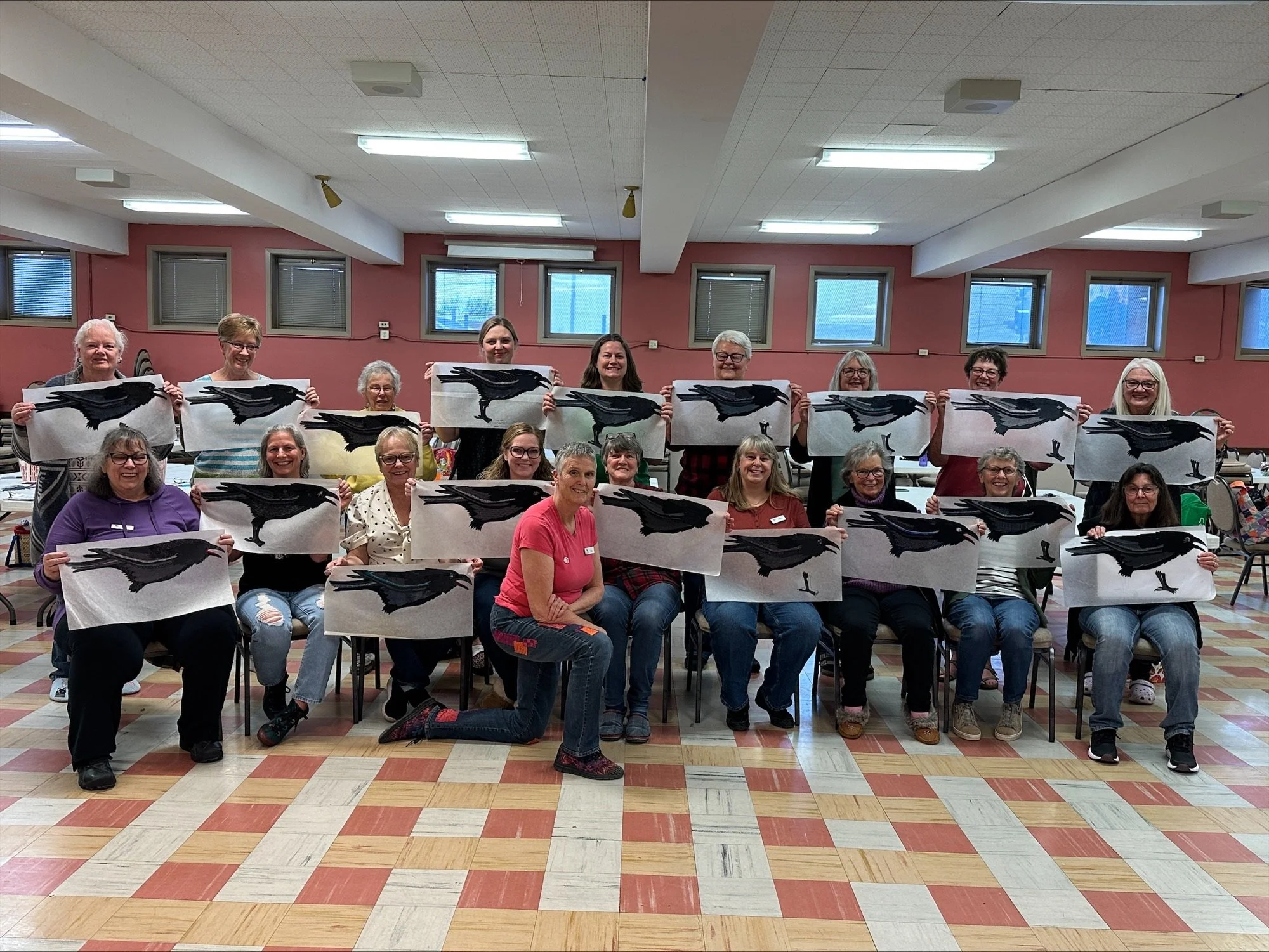 The 2025 Annual Away Retreat held at Mulhurst Camp was a great success. The venue had great views of Pigeon Lake where we watched the geese, swans and a red fox play. The big tables and excellent food were appreciated by all. Some would even say we had too many desserts! We got some quilting done, a puzzle was assembled, walks were taken and lots of laughs and visiting were fit in too.